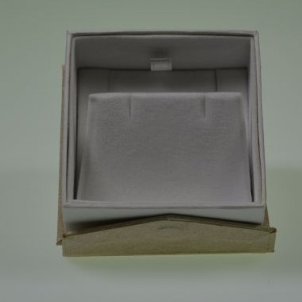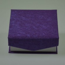 A hinged lid, textured paper covered, card box with magnetic closure(lids fold back on themselves to facilitate ease of display). Available in red, blue, cerise, beige and purple with white flock laminated card pads. Please note – printing is on a loose card(supplied) and not on the box. TIP! Printed clear acetate labels work well!
