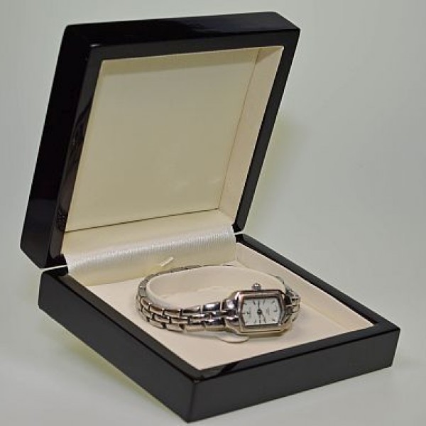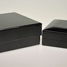 Gloss finish ‘Mahogany’ colour or black wood cases with cream satin lid liners and cream ‘coverlim’ pads. Supplied with a glossy white card 2 piece packer box for ‘Mahogany’ colour cases and black with black cases.
