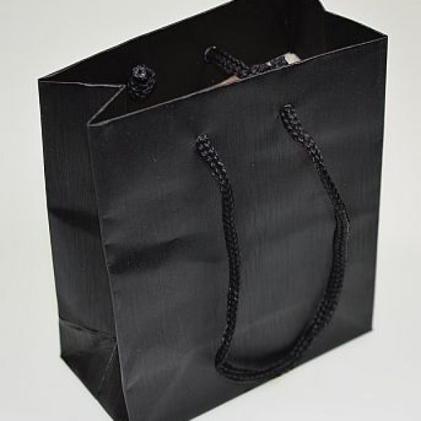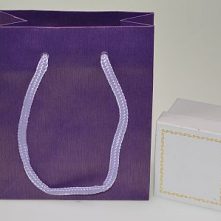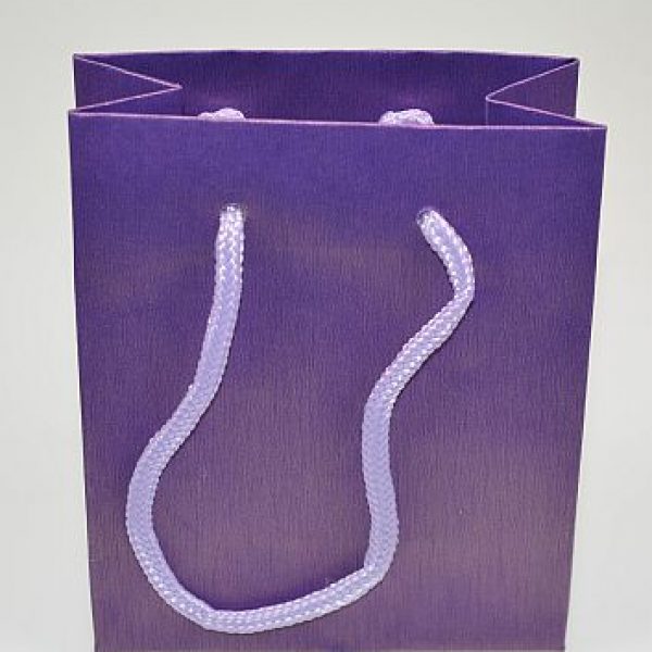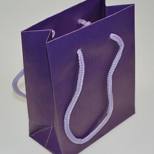 Hairline’ pattern silk effect paper carrier bag with matching cord handles. available in 3 sizes and 4 colours – blue, bronze, anthracite and purple. Printable.