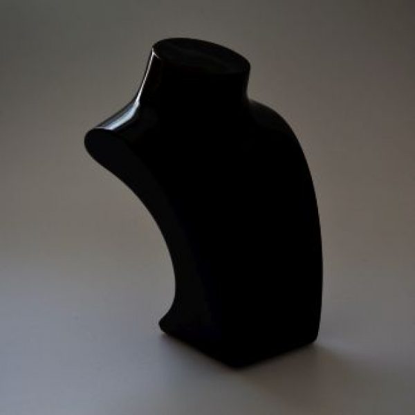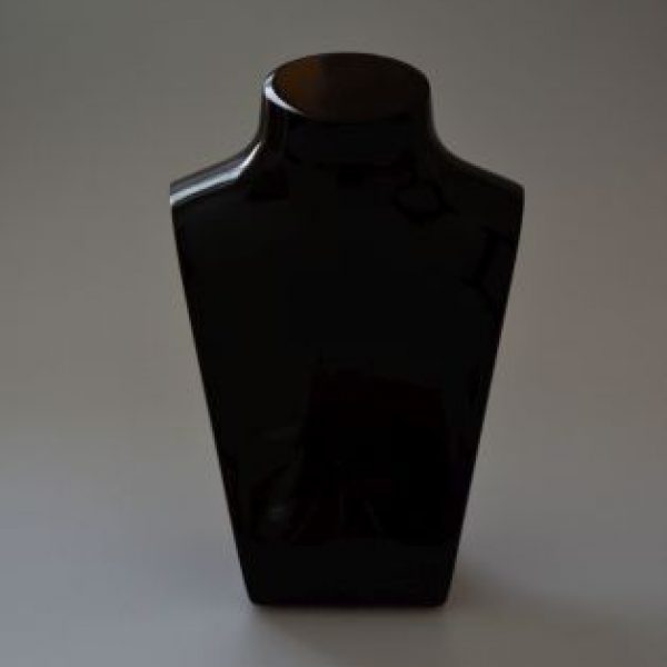 Bright lacquered acrylic busts with tab on rear for securing chain/necklace.