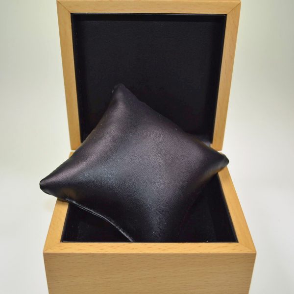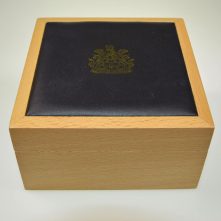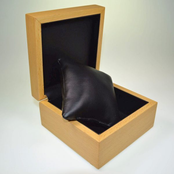Beechwood cases with ‘Coverlim’ lid top inlay. Lid liners, 2 piece, card packer box and pad materials/colours can be customised as required. N.B. SPECIAL ORDER ONLY. Allow up to 16 weeks for delivery. *VE5311/R RING CASE WITH BLACK LID LINER/BLACK PAD ONLY, NOW AVAILABLE FROM STOCK.