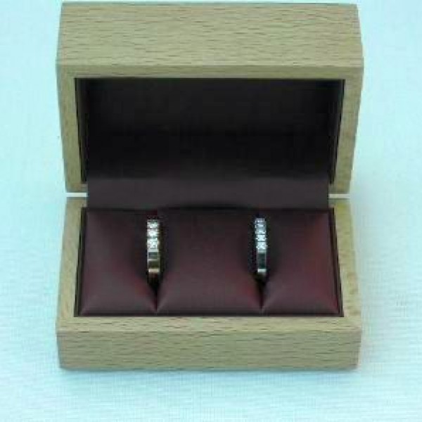 Beechwood cases with ‘Coverlim’ lid top inlay. Lid liners, 2 piece, card packer box and pad materials/colours can be customised as required. N.B. SPECIAL ORDER ONLY. Allow up to 16 weeks for delivery. *VE5311/R RING CASE WITH BLACK LID LINER/BLACK PAD ONLY, NOW AVAILABLE FROM STOCK.
