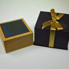 Beechwood cases with ‘Coverlim’ lid top inlay. Lid liners, 2 piece, card packer box and pad materials/colours can be customised as required. N.B. SPECIAL ORDER ONLY. Allow up to 16 weeks for delivery. *VE5311/R RING CASE WITH BLACK LID LINER/BLACK PAD ONLY, NOW AVAILABLE FROM STOCK.
