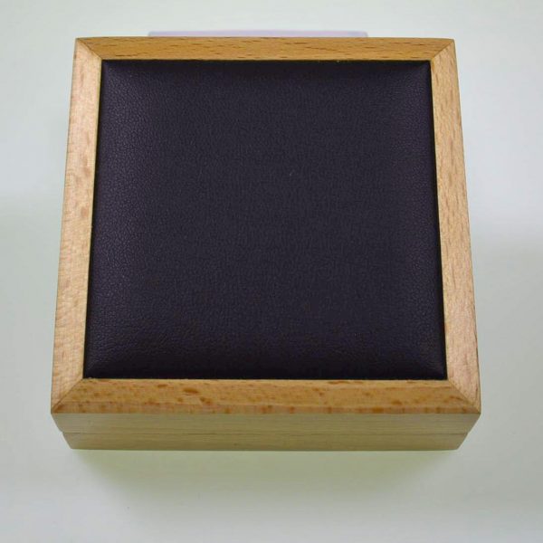 Beechwood cases with ‘Coverlim’ lid top inlay. Lid liners, 2 piece, card packer box and pad materials/colours can be customised as required. N.B. SPECIAL ORDER ONLY. Allow up to 16 weeks for delivery. *VE5311/R RING CASE WITH BLACK LID LINER/BLACK PAD ONLY, NOW AVAILABLE FROM STOCK.
