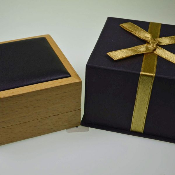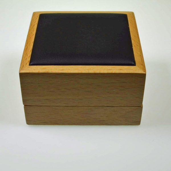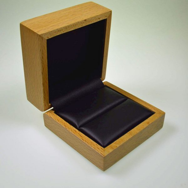 Beechwood cases with ‘Coverlim’ lid top inlay. Lid liners, 2 piece, card packer box and pad materials/colours can be customised as required. N.B. SPECIAL ORDER ONLY. Allow up to 16 weeks for delivery. *VE5311/R RING CASE WITH BLACK LID LINER/BLACK PAD ONLY, NOW AVAILABLE FROM STOCK.