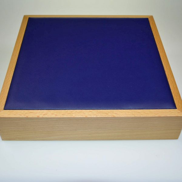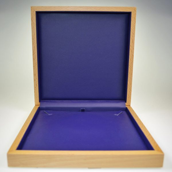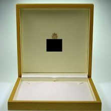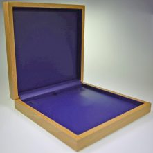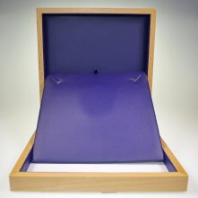 Beechwood cases with ‘Coverlim’ lid top inlay. Lid liners, 2 piece, card packer box and pad materials/colours can be customised as required. N.B. SPECIAL ORDER ONLY. Allow up to 16 weeks for delivery. *VE5311/R RING CASE WITH BLACK LID LINER/BLACK PAD ONLY, NOW AVAILABLE FROM STOCK.