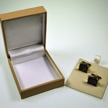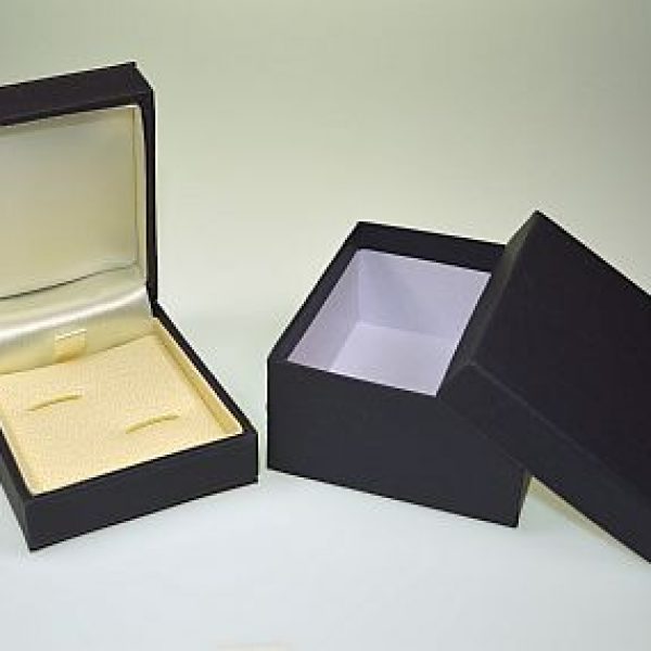 Modern, stylish cases, covered in a soft, tactile material, with padded lids, light cream satin lid liners and light cream PU pads. Supplied with a matching colour, paper covered card, 2 piece packer box. Stock colours: Beige, Green, Blue and Black.