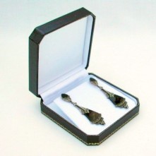 Elegantly styled leatherette covered cases, enhanced with classic gold tooling. Available in Black, Blue or Red with corresponding colour velvet pads or alternatively White pads, or Green with corresponding colour velvet pads or alternatively Cream velvet pads. All with white satin lid liners. Supplied with a white card 2 piece packer box with classic gold tooling.