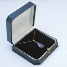These high quality cases are based on a traditional design, incorporating a push button closure, with a flange base. Available in Black, Blue or Green textured leatherette with cream satin lid liners and corresponding colour velvet pads or alternatively cream velvet pads. All are supplied with a 2 piece, card packer box.