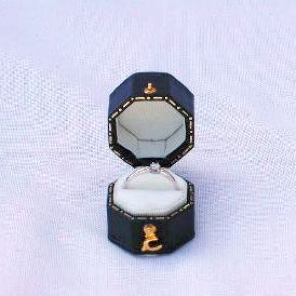 High quality, antique reproduction style cases with gold tooling and gold colour fastenings. Available in Black or Blue with matching colour velvet pads and cream silk lid liners or alternatively with Cream pads. All are supplied with a 2 piece card outer box. Kindly note, an extra block is required for printing the mini and midi ring cases.