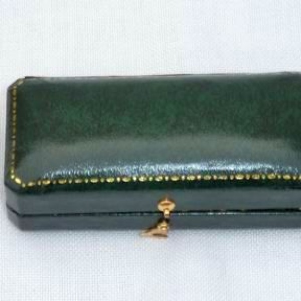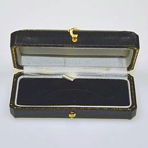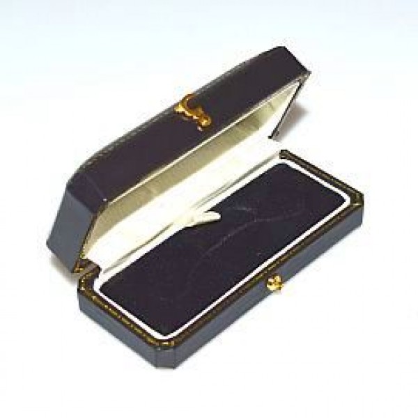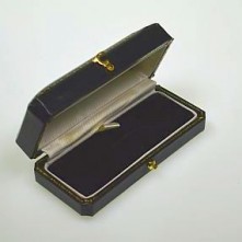 High quality, antique reproduction style cases with gold tooling and gold colour fastenings. Available in Black or Blue with matching colour velvet pads and cream silk lid liners or alternatively with Cream pads. All are supplied with a 2 piece card outer box. Kindly note, an extra block is required for printing the mini and midi ring cases.
