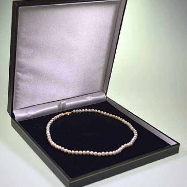 A premium quality, yet inexpensive leatherette covered case with white satin lid liner and velvet pads. Available in black, blue, green, burgundy and red with corresponding colour velvet pads. Alternatively, some black, blue, burgundy and red cases are available with white pads and some green cases are available with cream pads. All are supplied with a white card sleeve.