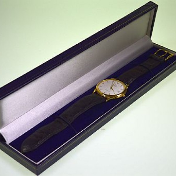 A premium quality, yet inexpensive leatherette covered case with white satin lid liner and velvet pads. Available in black, blue, green, burgundy and red with corresponding colour velvet pads. Alternatively, some black, blue, burgundy and red cases are available with white pads and some green cases are available with cream pads. All are supplied with a white card sleeve.