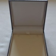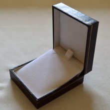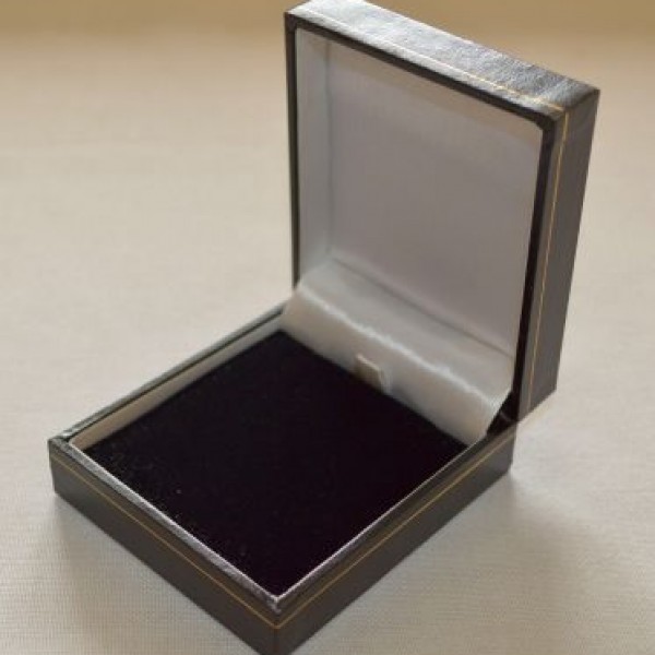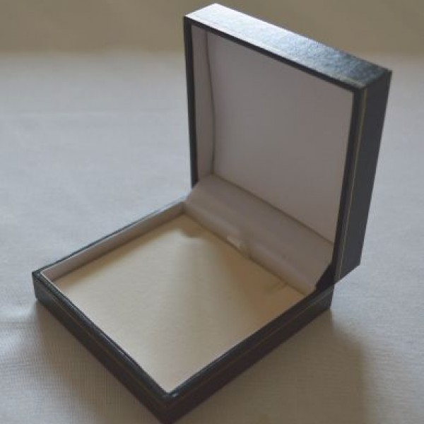 A premium quality, yet inexpensive leatherette covered case with white satin lid liner and velvet pads. Available in black, blue, green, burgundy and red with corresponding colour velvet pads. Alternatively, some black, blue, burgundy and red cases are available with white pads and some green cases are available with cream pads. All are supplied with a white card sleeve.