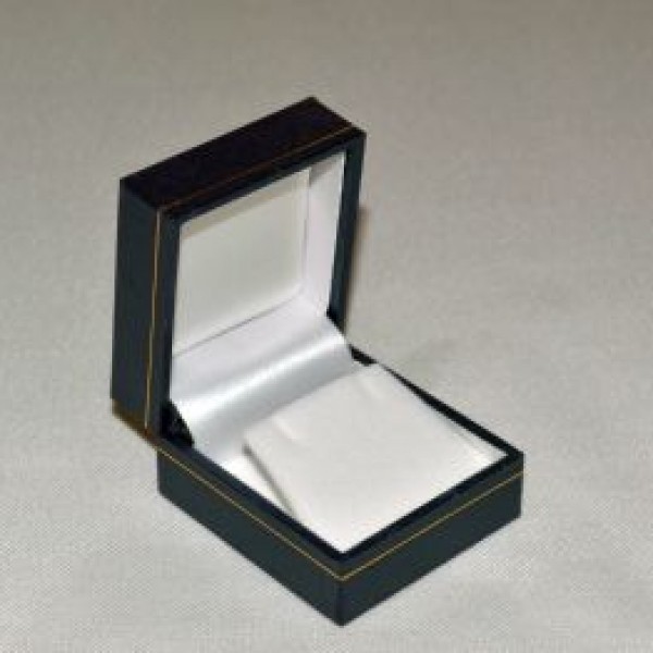 A premium quality, yet inexpensive leatherette covered case with white satin lid liner and velvet pads. Available in black, blue, green, burgundy and red with corresponding colour velvet pads. Alternatively, some black, blue, burgundy and red cases are available with white pads and some green cases are available with cream pads. All are supplied with a white card sleeve.